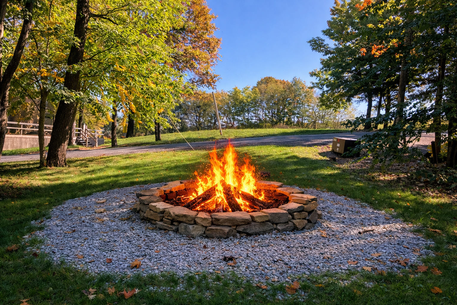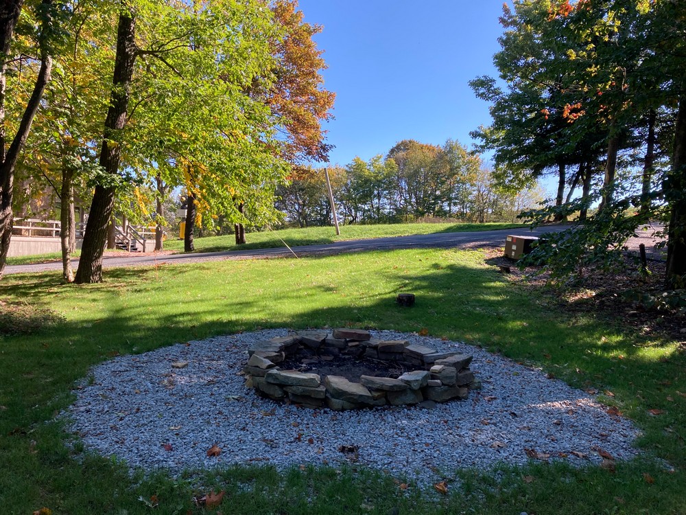 • Fire pit and wooded surroundings