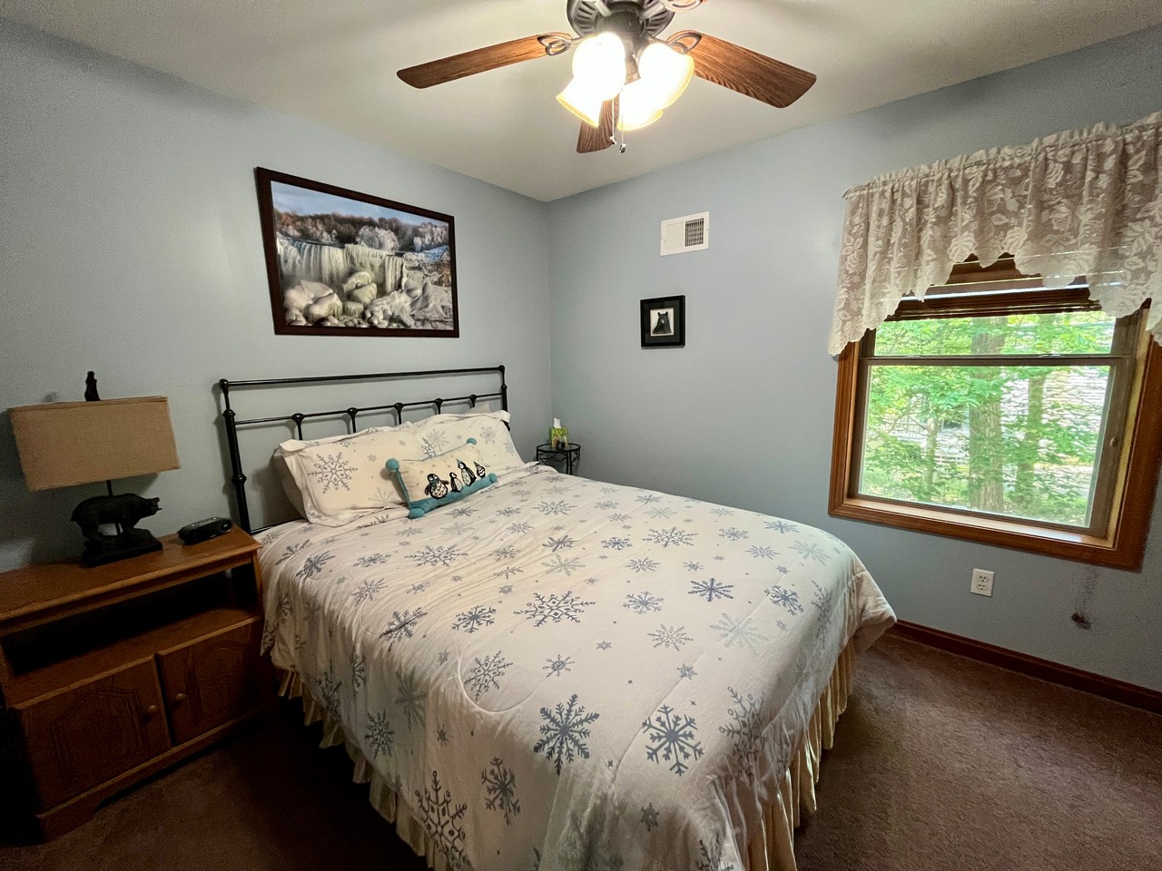 Start your mornings with coffee in the quiet wooded setting, spend your days at the pool or exploring nearby trails and waterfalls, and wind down in the evenings around the fire pit or by the fireplace.