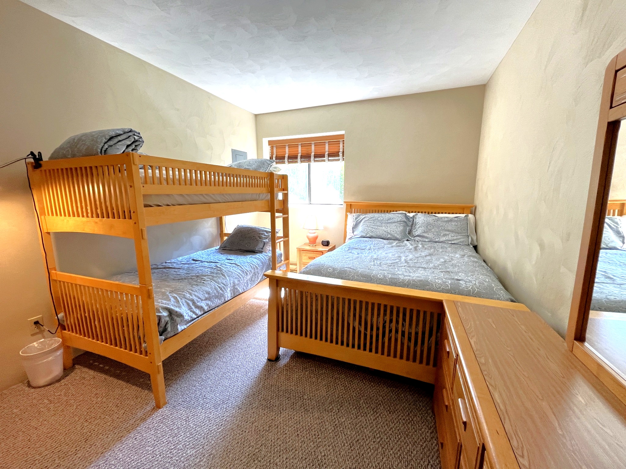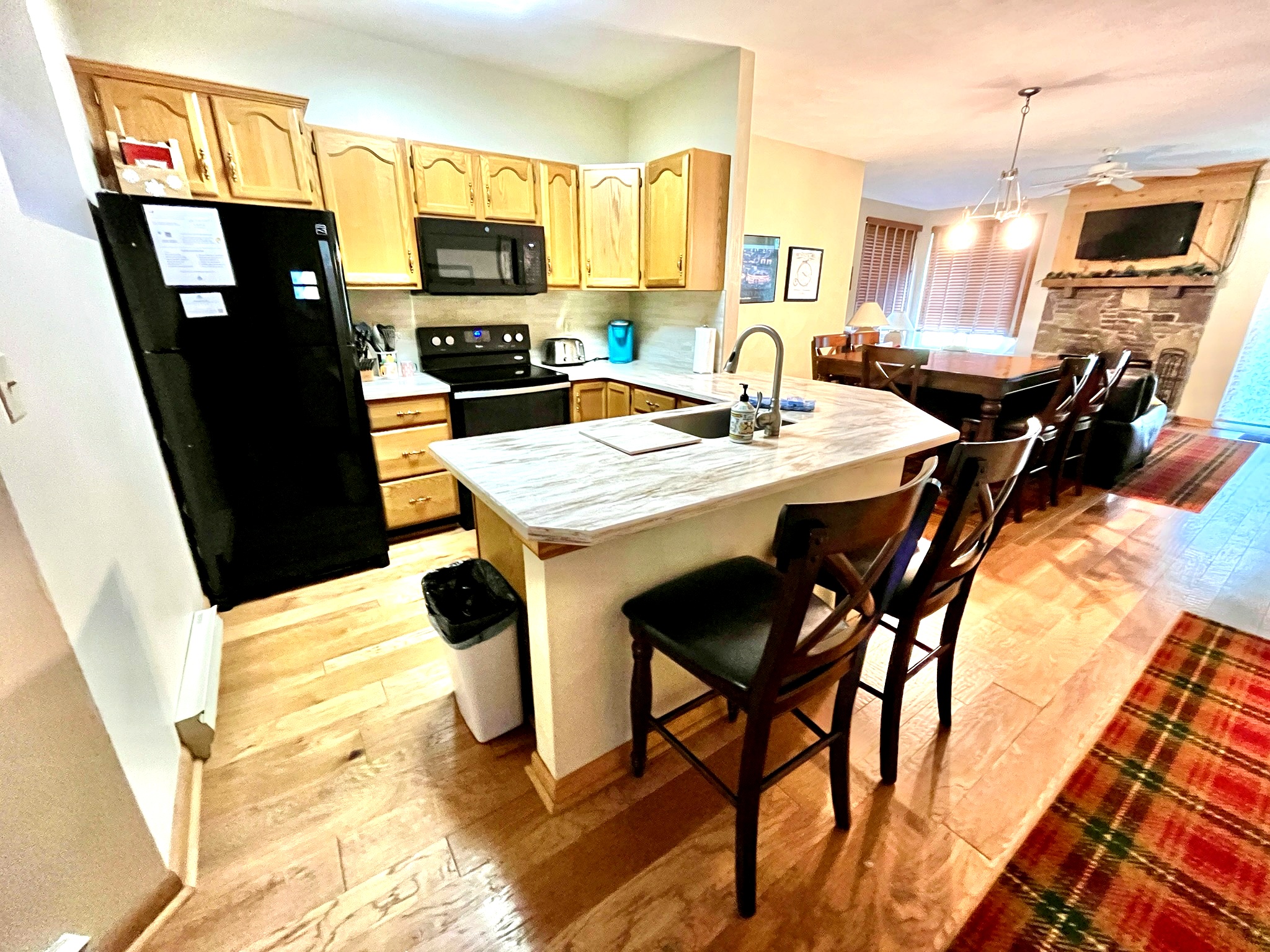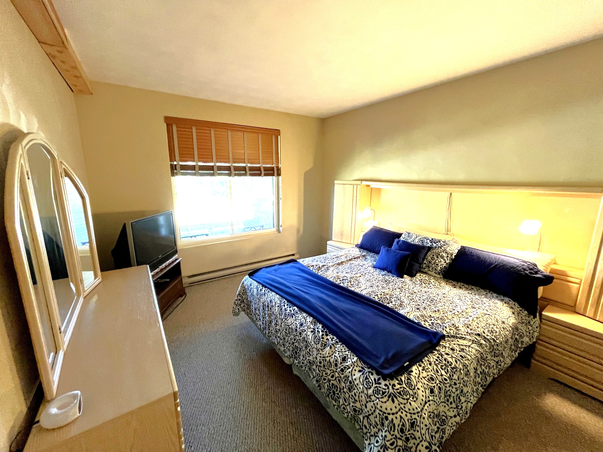 Enjoy a bright, open floor plan, a comfortable living area with fireplace, and a private deck for morning coffee or quiet evenings. The kitchen is fully equipped with a Keurig single-serve coffee maker, and a portable A/C unit keeps things comfortable in warmer months.